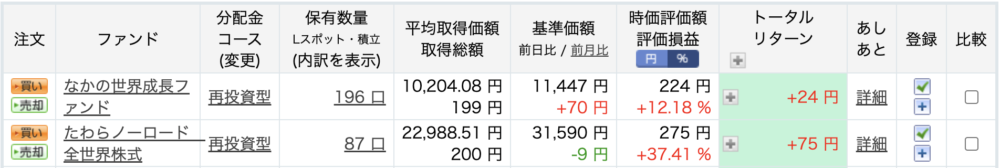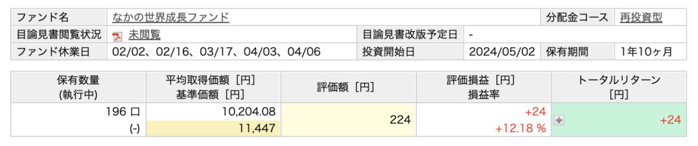 ・なかの世界成長ファンド(アクティブ):+12.18%(+24円)