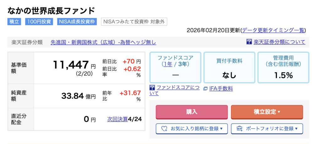 アクティブファンド(なかの世界成長ファンド)