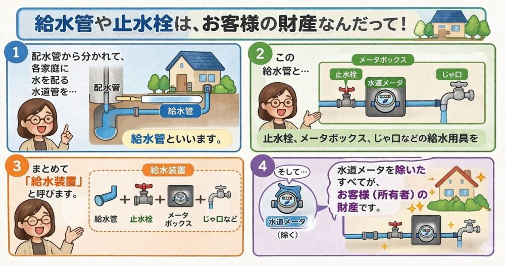 地面の下にある配管や止水栓など、設備そのものを持つ人 → 「財産」として台帳に残る