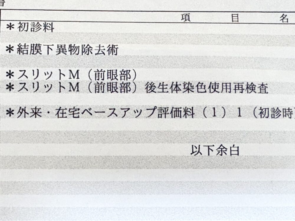 まつ毛1本で、結構な金額。と思いましたが、眼球に傷がついたりしていなかっただけ良かったと思うことに。