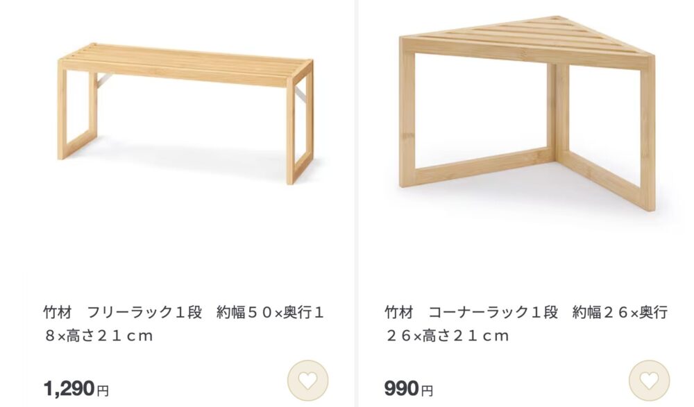 さて、これはなにかというと、「竹材 フリーラック」と「竹材 コーナーラック」です。